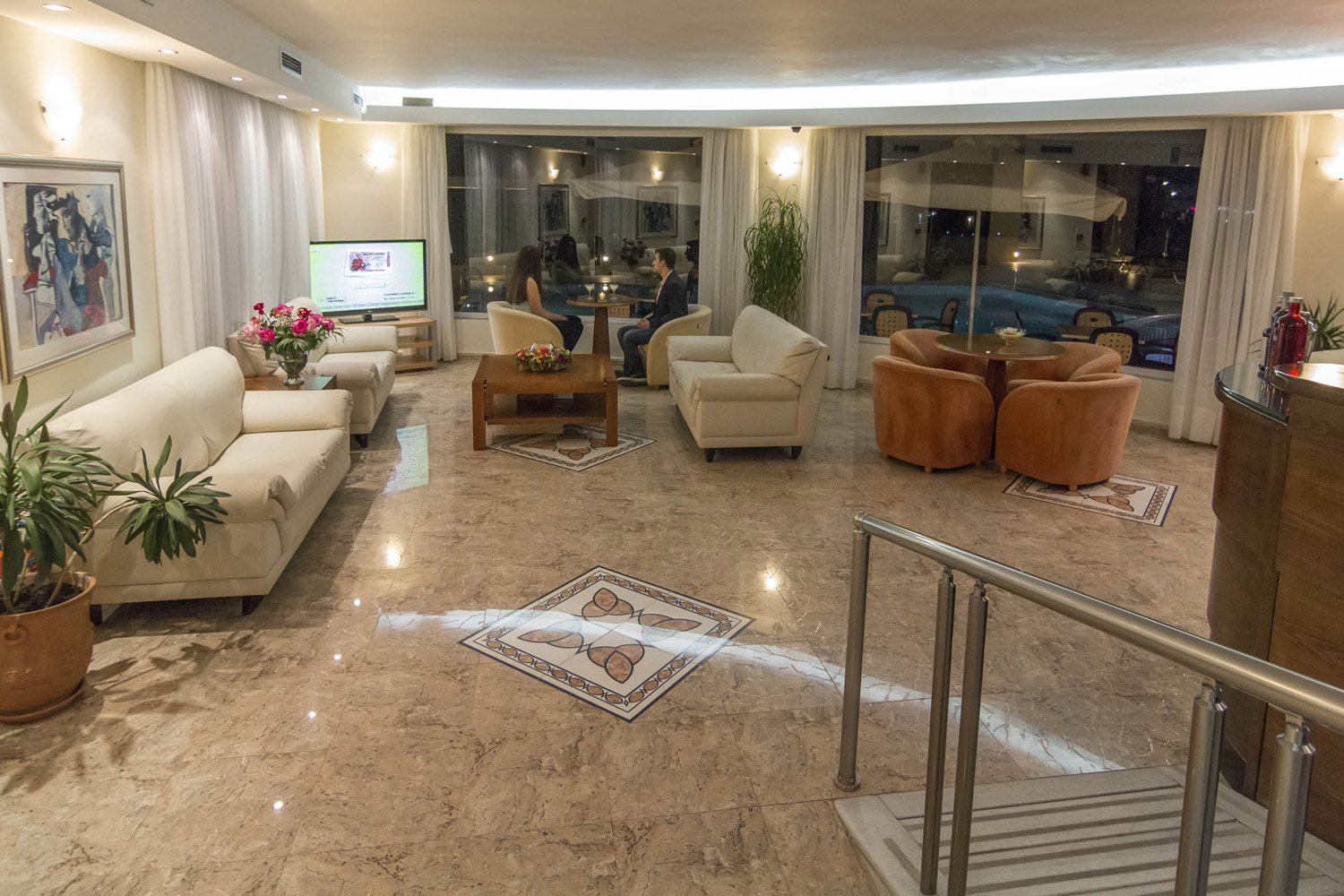 Your first impression of your stay ought to be the best one, which is why we have created a welcoming and cozy lobby with a comfortable sitting area for you to enjoy. At the lobby, one may find a small library, an internet corner with free WiFi for our guests, a satellite TV, and last but not least a coffee-brazilian bar overlooking the sea and the picturesque harbor with the chapel.
